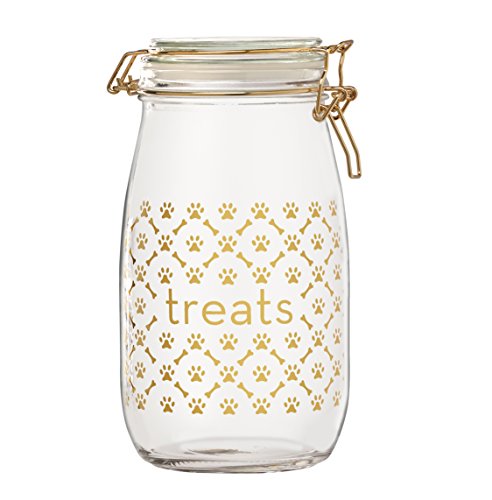 Amici Pet, A7CA884R, Royale Dog Treats Glass Hermetic Preserving Storage Canister, Food Safe, Gold Metal Clips, Large, 52 Ounces through an online shopping site.