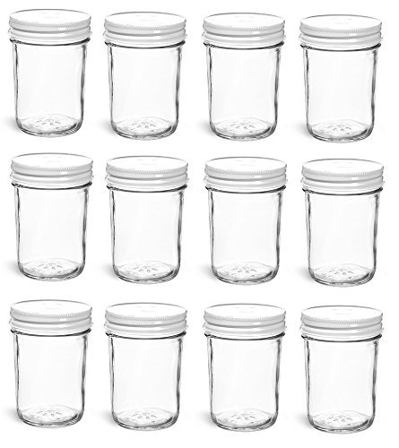 - Nakpunar brand 12, 8 oz mason jars with 12, white mason jar lids