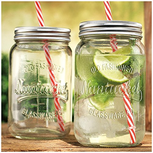 - Sip and enjoy your favorite beverages with a touch of vintage style; each glass features a screw-on metal top and a reusable straw